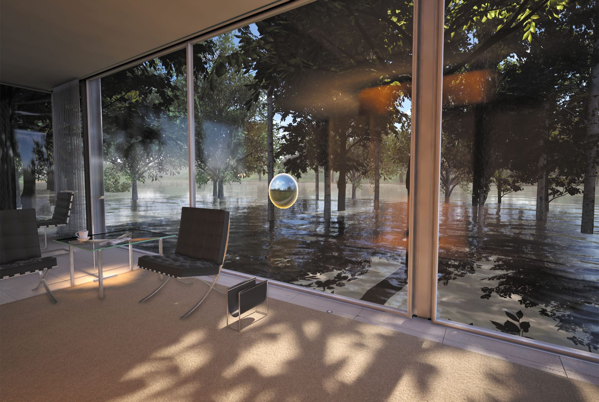 Images showing up different sections of STAGE Farnsworth House simulation.